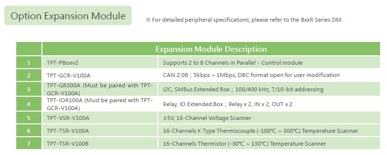 Battery pack capacity test, overload protection test, charge/discharge test Reliability test, aging test, finished/semi-finished product test,communication test, cell balancing test, cell temperature test CAN 2.0, SMBus,I²C, UART, RS485Obtain stage-switching or termination conditions of batterypack tests through communication Cell Voltage Scanner obtains individualcell voltages as conditions for test stage switching or termination Cell Temperature Scanner obtains individual cell temperatures, or pack-specifiedlocation temperatures, as conditions for test stage switching or termination