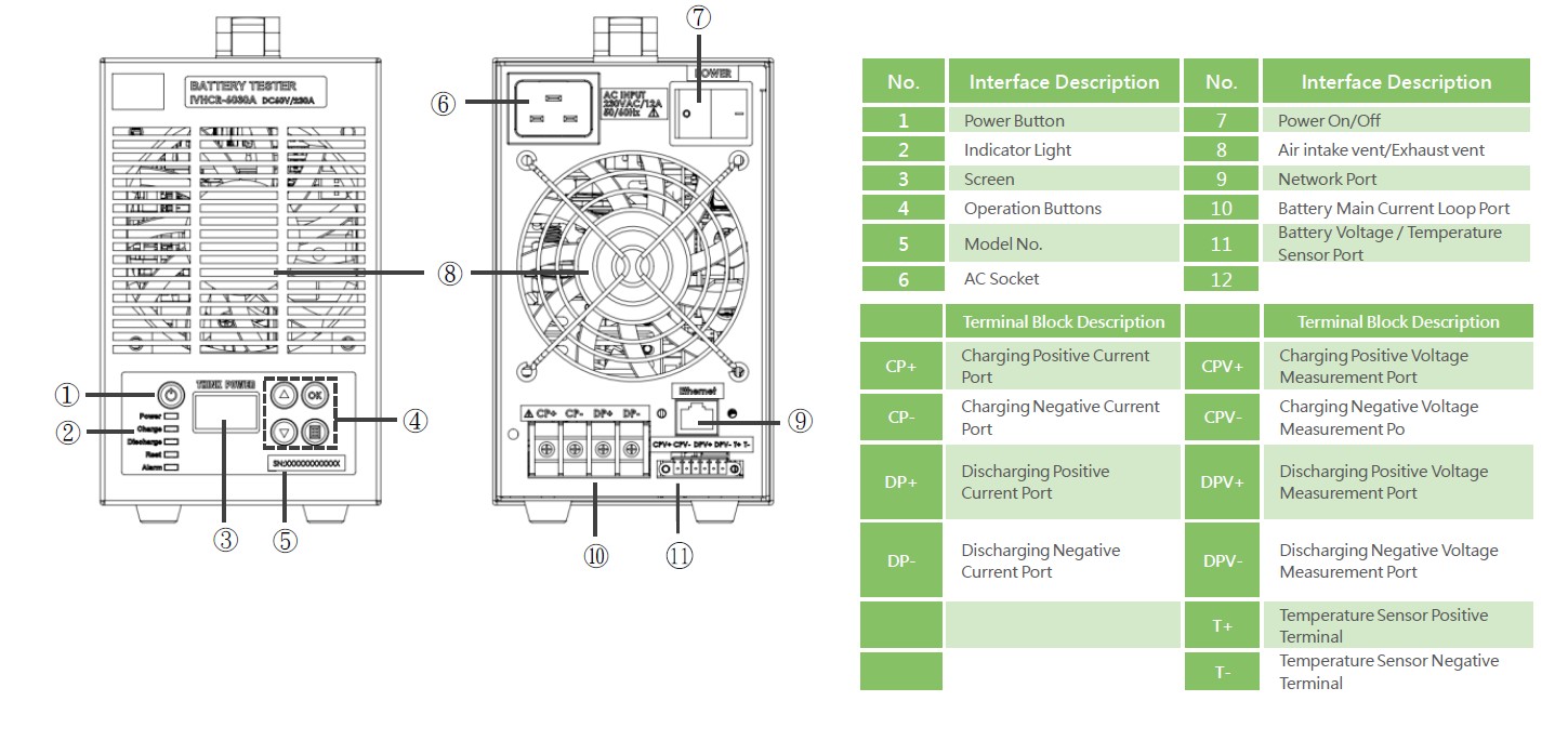 Battery pack capacity test, overload protection test, charge/dischargetestReliability test, aging test, finished/semi-finished product test,communication testCAN 2.0, SMBus, I²C, UART, RS485Obtain stageswitchingor termination conditions of battery pack tests throughcommunication