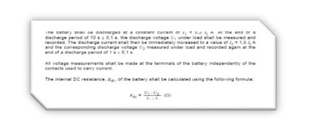 Measurement of the internal DC resistance (DCR)Can be embeddedinto testing processes, enabling DCR measurement after variouscharacteristic tests.Provides parameter customization or testingbased on built-in IEC standard, with automatic data generation.